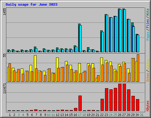 Day | Hits | Files | Pages | Visits | Sites | KBytes | ||||||