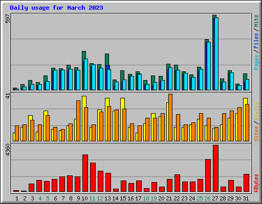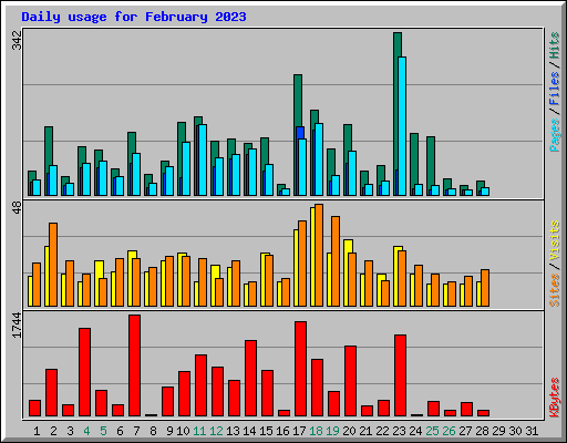 Day | Hits | Files | Pages | Visits | Sites | KBytes | ||||||