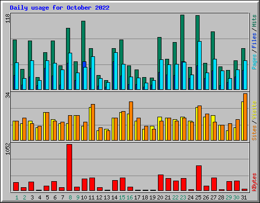 Day | Hits | Files | Pages | Visits | Sites | KBytes | ||||||