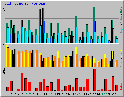 Day | Hits | Files | Pages | Visits | Sites | KBytes | ||||||