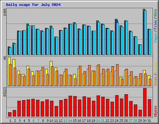 Day | Hits | Files | Pages | Visits | Sites | KBytes | ||||||